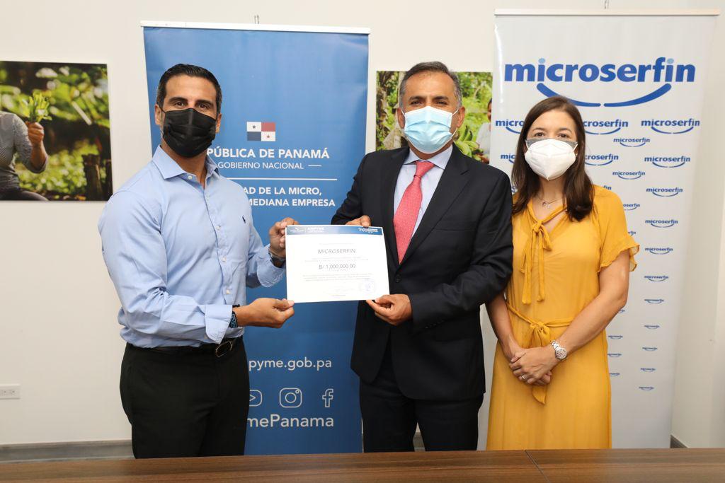 Representantes de AMPYME y de FIDEMICRO realizaron la entrega de la certificación del préstamo aprobado a Microserfin y a Banco Delta por $1,000,000.00 cada una, con el fin de que estas otorguen préstamos blandos a micro y pequeñas empresas, así como emprendedores, como acción para lograr la recuperación económica del país a través del programa FIDEMICRO-Panamá.
